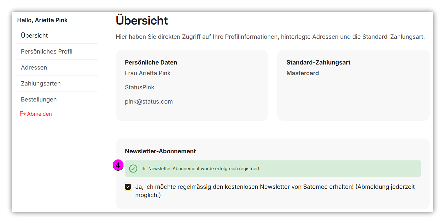 3. in der Mitte befindet sich die Checkbox bei Newsletter-Abonnement. Diese aktivieren.
