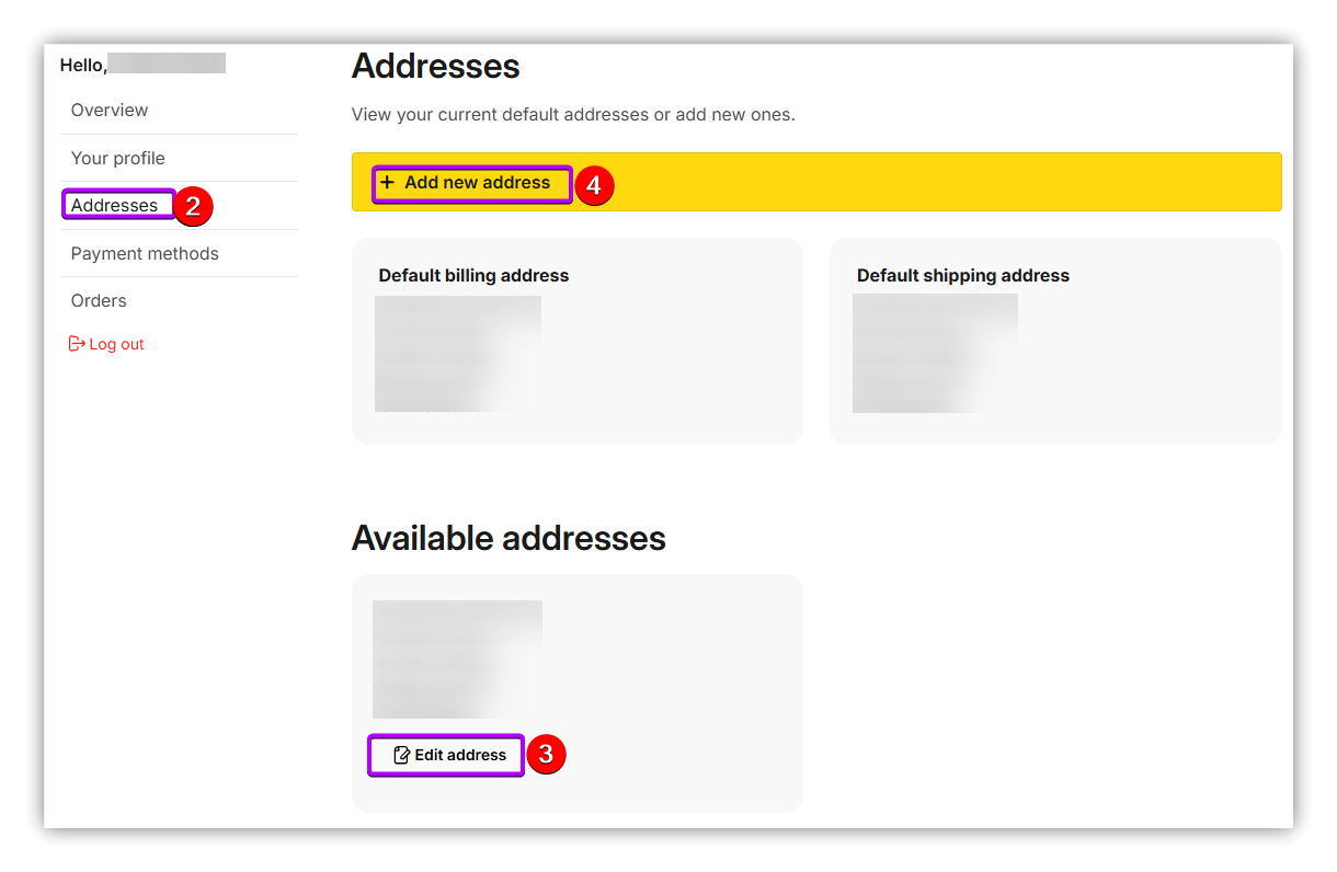- Select "Edit adress " or 4. "Add new address" and confirm this after the changes by clicking on "save".